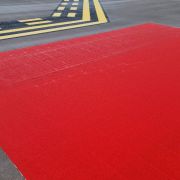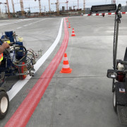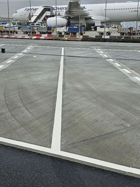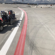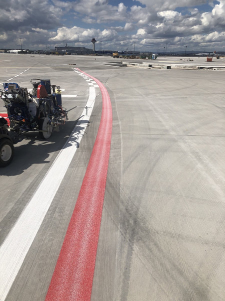 Unsere Markierungen auf den Rollwegen leiten Flugzeuge sicher zu ihren Parkpositionen und Startbahnen. Dabei sorgen wir für eine klare und gut sichtbare Kennzeichnung, die eine effiziente und sichere Bodenabfertigung unterstützt.